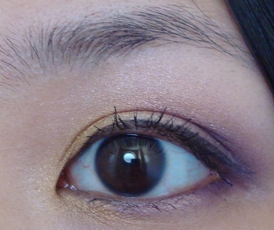 3. 用紅棕色(雪舞冬櫻眼影盤右二) 化後三分之二及下眼影中段三分之一