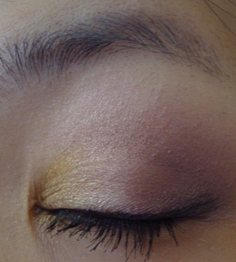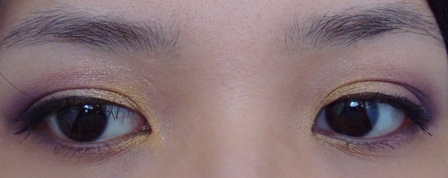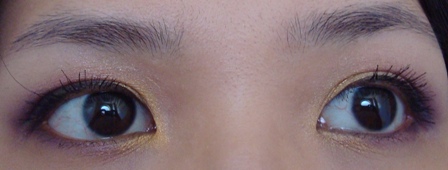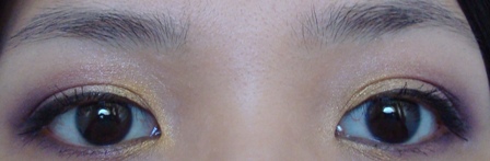 2. 金黃色(雪舞冬櫻眼影盤左一)化上下眼皮前三分之一並打亮眼頭