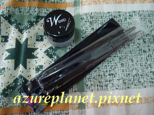 我用過的眼線產品包括了MUF與NYX的眼線筆、Revlon與Lunasol去年聖誕組合的眼線液、老妹用不順手丟給我的MJ自來水眼線筆,最後就是我10月底趁網站買一送一購入的wee'p眼線膠